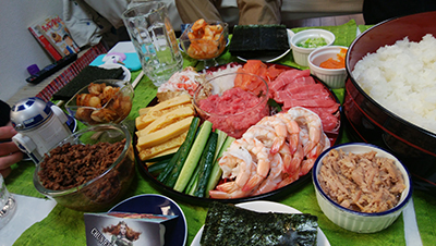 1月13日、スターウォーズ仲間の新年会IN手巻き寿司の様子です。
