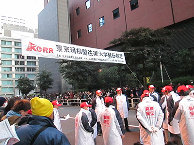 沿道では大学の登りや旗横断幕はOKらしいですが、スタートゴール、中継所ではこれらのことを守らないといけないのです。