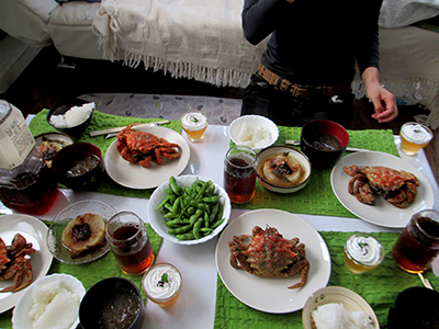 あびさんと来須さんには食べ方を教え、そんで来須嬢、蟹みその美味さに目覚める。