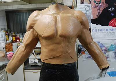 そんでTKCさんは2月11日に私の家に乗り込んできて、三角様の脳みそのウレタン造形手伝えと…挙句に三角様のマッスルスーツもトルソーごと持ち込みやがりまして…