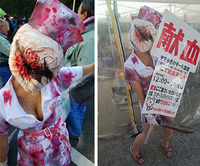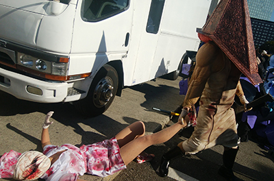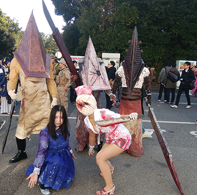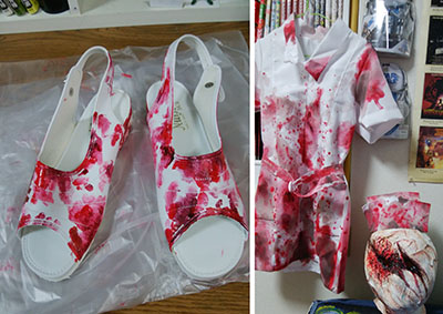 実は、今回のWFで友人のTKCさんが相方のフッシーさんにサイレントヒルの三角様をさせるといっててそれの制作に乗り出してたんですね。それ聞きながらバブルヘッドナース誰かやらないかね~なんて言ってた時に、たまたまそんなときに、かれんさんがサイレントヒルの映画を見てて。面白かったと呟いてて、私がナースやらん?っていったら即答でやります!と。