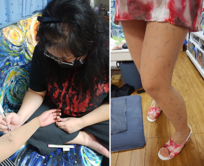 血管はかれんさんにストッキングはいてもらい、コピックで血管描く。