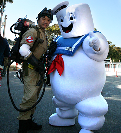 更衣室から着替えていくよりも、コスブースで、着ぐるみの中に入った方が簡単です。