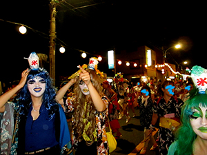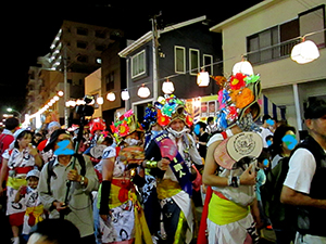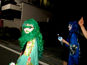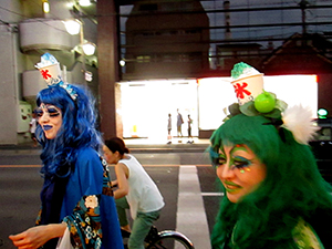仮装して市民を楽しませる、ようは着ぐるみ的なゆるい仮装です。(ちんどん屋的な)