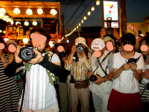 練り歩きが時始まる前は、山車の前で記念撮影ができるのですが…うちら4人…