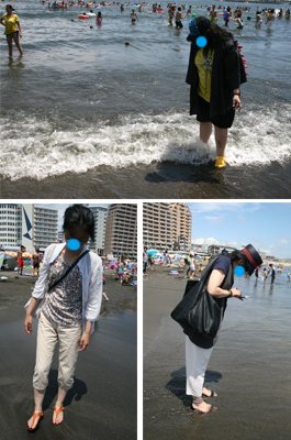 すぐに江の島に行こうとしましたが、せっかくなのでビーチに降りるオタクたち。