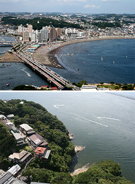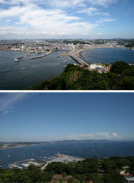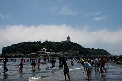 ビーチから見る江の島もいい!