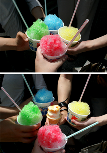 ついて速攻かき氷食べる。せっかくだから全員違う色にしようと。