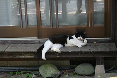 タワーを降りて、食事に向かう中、猫がごろごろ。