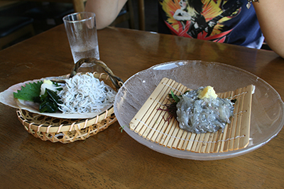 江の島来たからにはシラスを頼まないと!釜揚げシラスと生シラス。