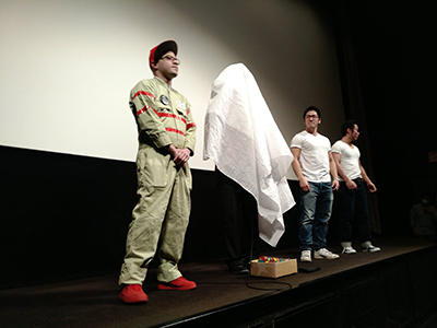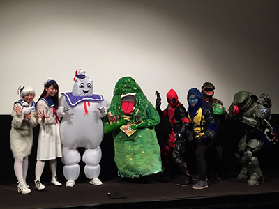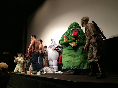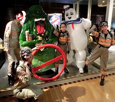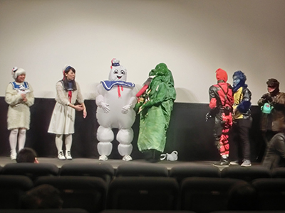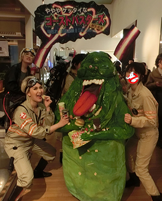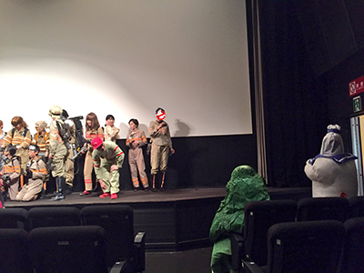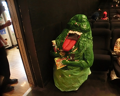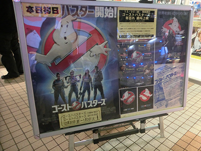 まず昨年30日に池袋新文芸座という映画館にて上映されました、ゴーストバスターズ旧作とリブート版、本日まで上映で、そして本日まで私の制作した着ぐるみ、ジャケットなど、ゴーバスグッズが劇場ロビーに展示されております。