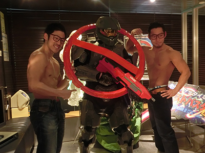 マッチョ二人と撮影する、なしあびの二人。