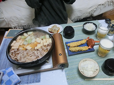 帰宅後、はすき焼き。