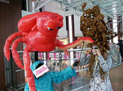 ツィッターでは呟いていましたが、左端にいるクラッシュを背負ってるインスタ泥棒君が、今回ハンク作るっていうので、ウレタン造形とラテックス塗装を1から叩き込み、右端のでかい蛸、ハンクの制作をお手伝いしました。この制作風景は後日また別途ブログ纏めたいと思います。