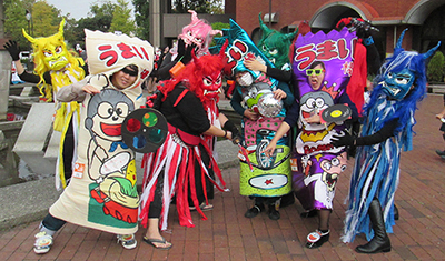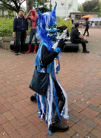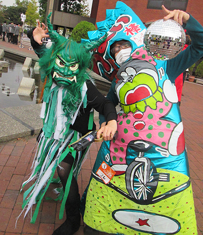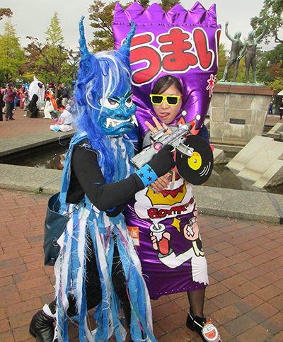 2500人の仮装パレードはすごい物でしたし、それを見てくれる沿道のお客さんもすごかったです。一人で五人分の衣装と小道具はしんどかったですけど、つくって良かったw