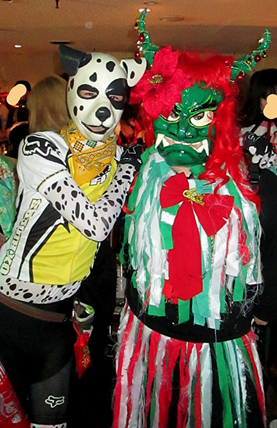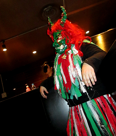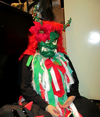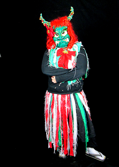 私。ナマハゲクリスマス版。角に装飾してるのよ。足袋履かないほうがいいなぁ。。でも寒いし