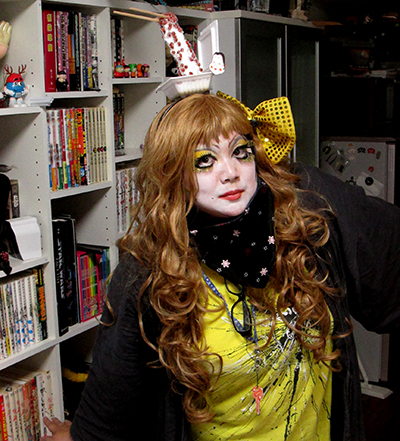 リア充たちの集まりに一人、女々装が混じる。この日のド レスコードはゴールドでしたが、私は意味を盛大にはき違 え、納豆のヘッドドレスを作って頭にのせて参加。