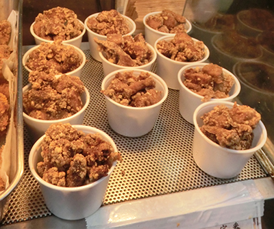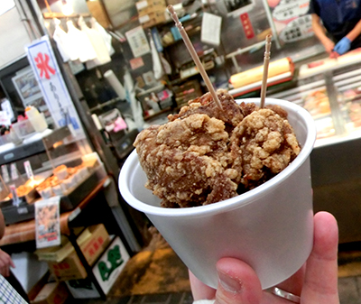 仲見世商店街の魚屋で、マグロのから揚げ買う。