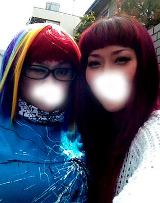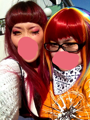髪が赤いのが友人のエミリー。レインボーの髪が昴。昴はウィッグだけどね。
