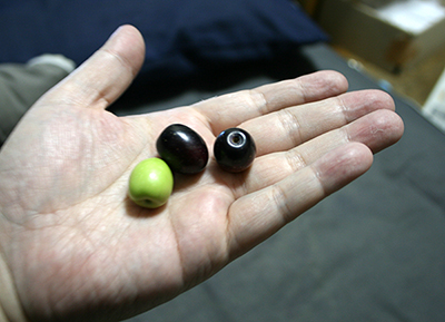 なんの実だろうと3個ほどとってみたんだですけど、あれ?これオリーブ?って気づくわけです。