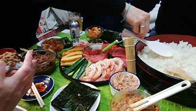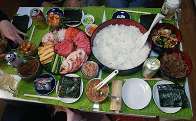 1月13日、スターウォーズ仲間の新年会IN手巻き寿司の様子です。