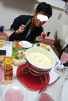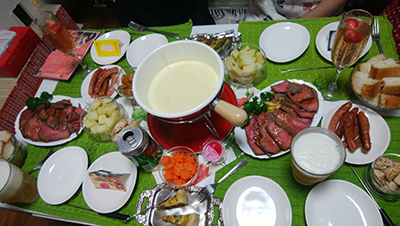 この日は、ハロウィンバスのメンバーでうちでチーズフォンデュとローストビーフ会です。