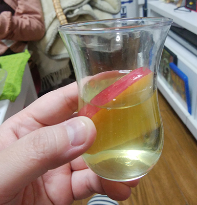 3日ぐらい前から、自家製リンゴジュース作ってましたが、微炭酸が出る前に、みんなに振舞い。もうないです。自家製美味いね、水とリンゴだけでジュースが出来た。クッキングパパ参照。
