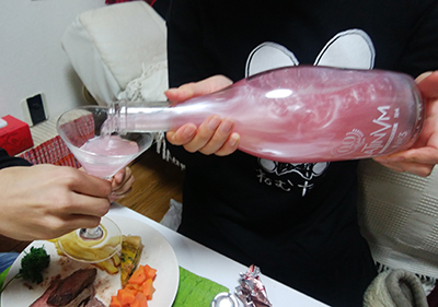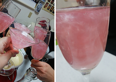 じょじ兄貴の到着を待って、たきたまさんが持ってきてくれた女子力ハイパーインスタ映え最強のソフトドリンク!これまだ日本未発売なんだって!お酒の方は出てるみたいで。