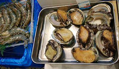 鮑いました。中玉ですが、値段もお手頃だし、元気よく生きてたから4匹購入。