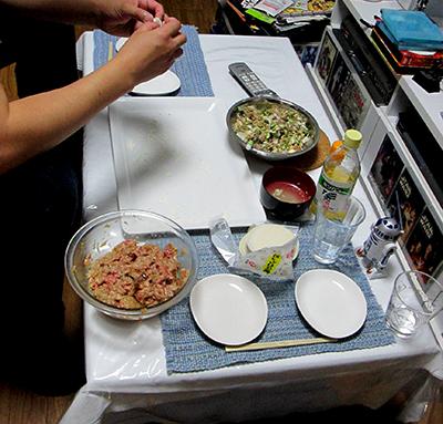 市販品の餃子みたいな餃子が出来上がるので、私は横でまったり。。