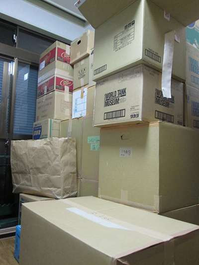 (例・赤帽の人に迷惑だろ。・何なんだよこの荷物の量・ぎりぎりで荷造りしてからに!・勘弁してください・どうするのよこの荷物!・5月までには整理できるの!?などなど。)